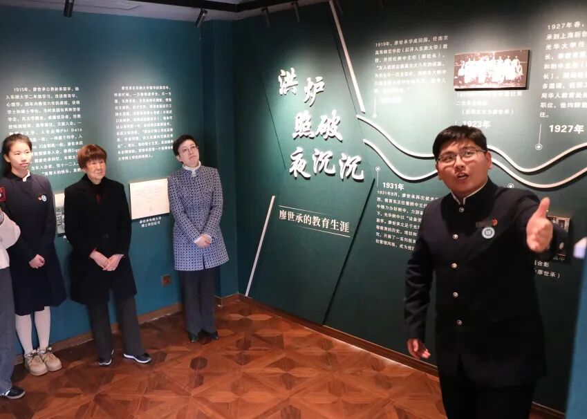 廖有庆女士打卡纪念馆,成为首位参观者。随后,来宾们在小先生宣讲员的带领下有序参观纪念馆,深入了解廖世承先生的教育生平与精神遗产。