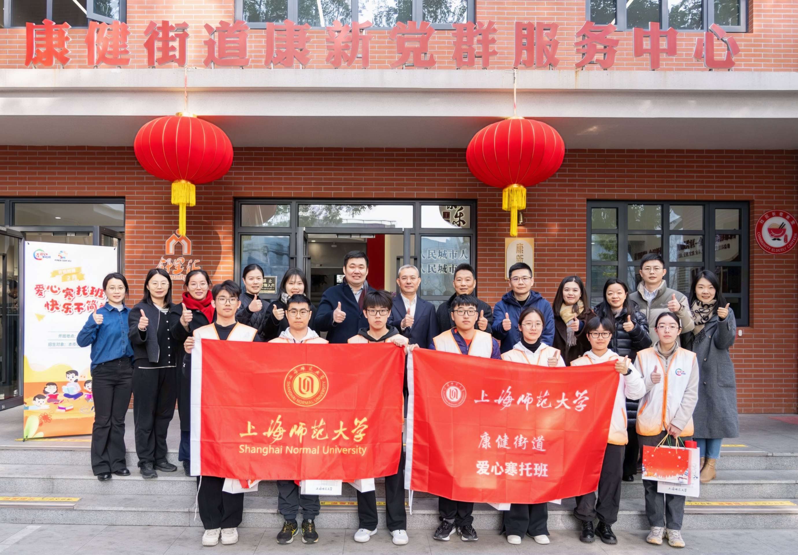 2月2日上海市小学生爱心寒托班开班首日,团市委副书记,市团校党委书记、校长王江,上海师范大学党委副书记、副校长赵扬,市教委德育处一级调研员江伟鸣,团市委学校工作部部长葛银锋,团市委学校工作部副部长周薇,团长宁区委书记郭文瑞,新华路街道党工委书记郝鹏、马克思主义学院党委书记刘凤等一行走访长宁区新华路街道爱心寒托班,参与开班仪式并观摩由校团委联合马克思主义学院共同开发的上海市小学生爱心寒托班开班主题教育《我与祖国共成长:一起走进“十五五”规划》。