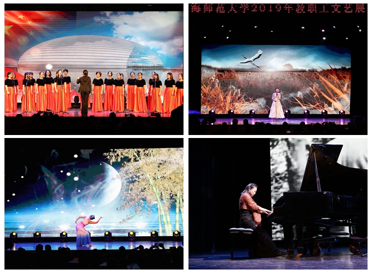 2019年12月27日,2019年上海师范大学教职工文艺展演在师大音乐厅举行。来自14家基层单位的一百三十余位普通教职员工以多姿多彩的舞蹈、演唱、瑜伽、太极、京剧等文艺、体育、艺术表演节目,展示了不凡才艺,彰显了生命活力,热情讴歌了祖国建设和学校发展的伟大成就,尽情表达了热爱生活、热爱艺术、追求美好的情怀。