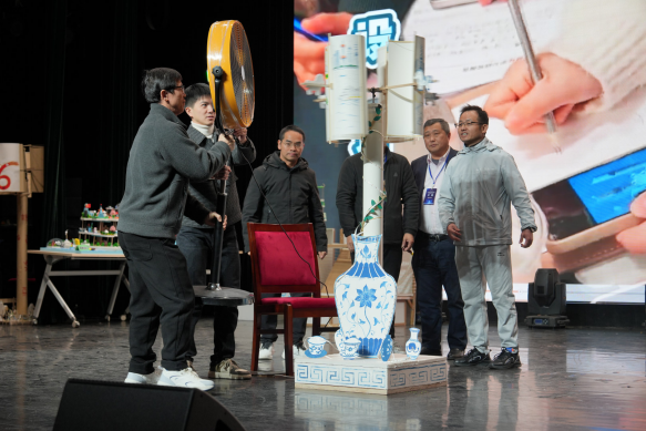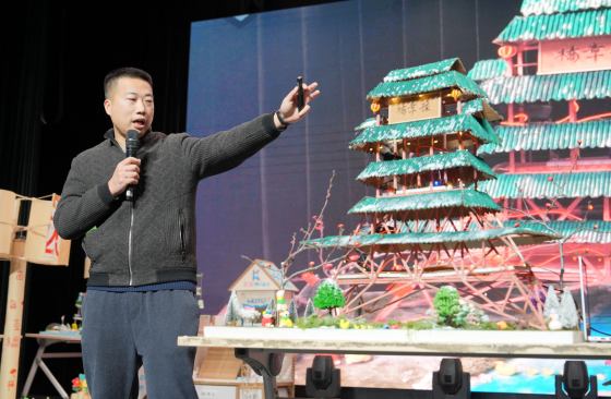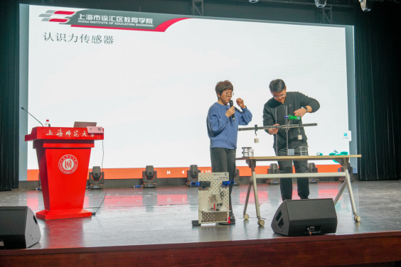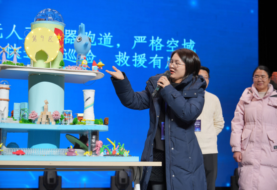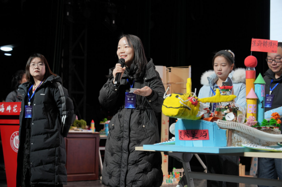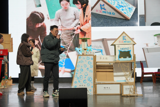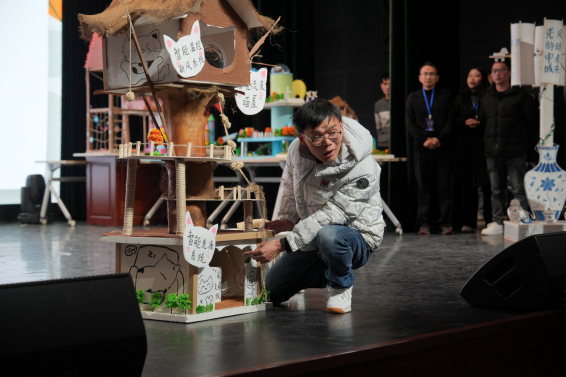 2月8日,项目化实践成果展示会在上海师范大学音乐厅举行,展示活动由建筑工程学院副院长朱美春主持,邀请了上海市奉贤区教育学院副院长翁海亮、上海市嘉定区教育学院科学教研员陈健、顶思教育集团创始人马晓平、上海宏文学校学生发展部总监李子昕、上海师范大学第四附属中学校长朱银辉、上海师范大学附属崇明正大中学校长王通、上海师范大学建筑工程学院科学教育系党支部书记彭丽担任评委。十六个学习小组依次登场,就“贯木拱桥”“智能喵屋”“未来城市”“风力发电塔”四个项目进行最终成果汇报与答辩。从严谨的设计图纸到精巧的实体模型,从生动的解说视频到清晰的逻辑阐述,全面展现学员在一周内将理论转化为实践、让创意落地的学习成效,体现了突出的工程思维、跨学科整合能力与团队协作精神。评委专家对各组作品逐一打分,上海市嘉定区教育学院科学教研员陈健进行了专业点评。