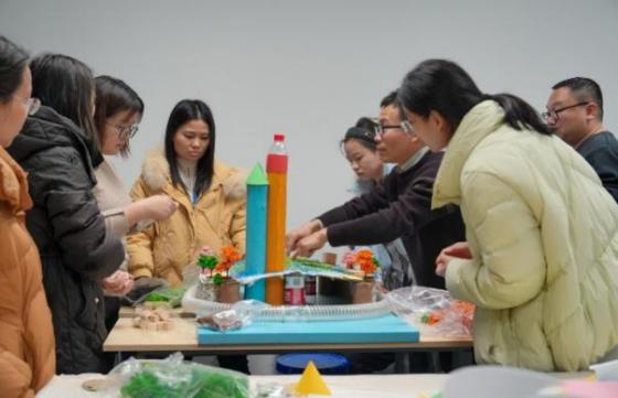 在江西阶段,培训聚焦理念更新与思维转型。上海师范大学耿步健教授作“奋楫扬帆启新程——学习领会党的二十届四中全会精神”专题报告;上海师范大学国际教师教育中心副主任王洁教授以“科技教育在学科实践中的可为与何为——从‘跨学科拼盘’到‘边界跨越’”为题,引导学员深入思考科技教育在学科教学中的融合路径。上海师范大学建筑工程学院的罗晶博士、朱美春教授、王英副教授分别围绕“从共情到落地:设计思维与工程思维”“从蓝图到原型:材料与技术的协奏”“从工程实践到教学设计:K12工程教育教学链”等主题开展专题讲座,为项目实践提供方法论支撑。学员们就“贯木拱桥”“智能喵屋”“未来城市”“风力发电塔”四大项目化学习课题,在导师指导下进行方案设计与初步实践,为后续深度制作奠定基础。