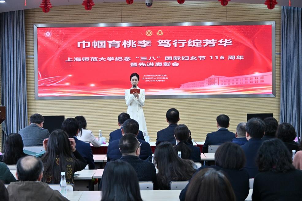 3月6日下午,“巾帼育桃李 笃行绽芳华”上海师范大学纪念“三八”国际妇女节116周年暨先进表彰大会在会议中心二号报告厅举行。校党委书记林在勇,校长陈恒,校党委副书记吴沛东、杨海燕,滕云,副校长蒋明军、李国娟、朱惠军,总会计师曹光明,校妇委会委员、各二级单位党组织书记、工会主席、女工委员、获奖模范佳侣及先进个人、女教师代表齐聚一堂,共同庆祝属于全体女同胞的节日,致敬先进、凝聚力量。