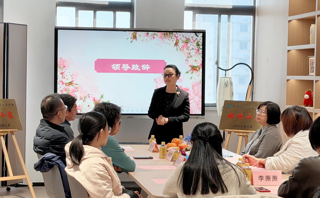 活动伊始,人文学院工会主席董大学主持仪式,向到场领导与嘉宾表示热烈欢迎。张红英在发言中高度评价了人文学院在妇女工作中的深厚积淀与亮眼成绩。从奉贤校区“教工小家”与“妇女小家”合二为一,到徐汇校区单独开辟专属空间,学院始终高度重视妇女工作与女教职工关怀。女性研究中心持续深耕、女教授女干部联合会凝聚合力、共谋发展,更斩获上海市教育系统模范教工小家、全国教科文卫体系统模范职工之家等多项荣誉,彰显了人文巾帼的硬核实力。她希望学院能用心管好、用好“妇女小家”与“妈咪小屋”,让其成为有温度、有活力、有凝聚力的暖心之家、幸福之家、奋进之家。