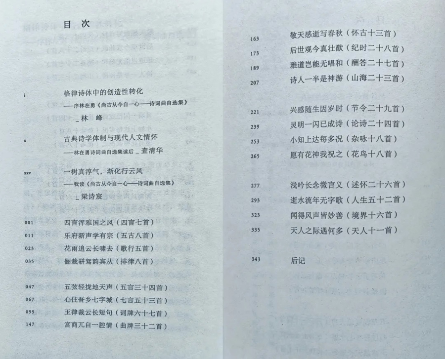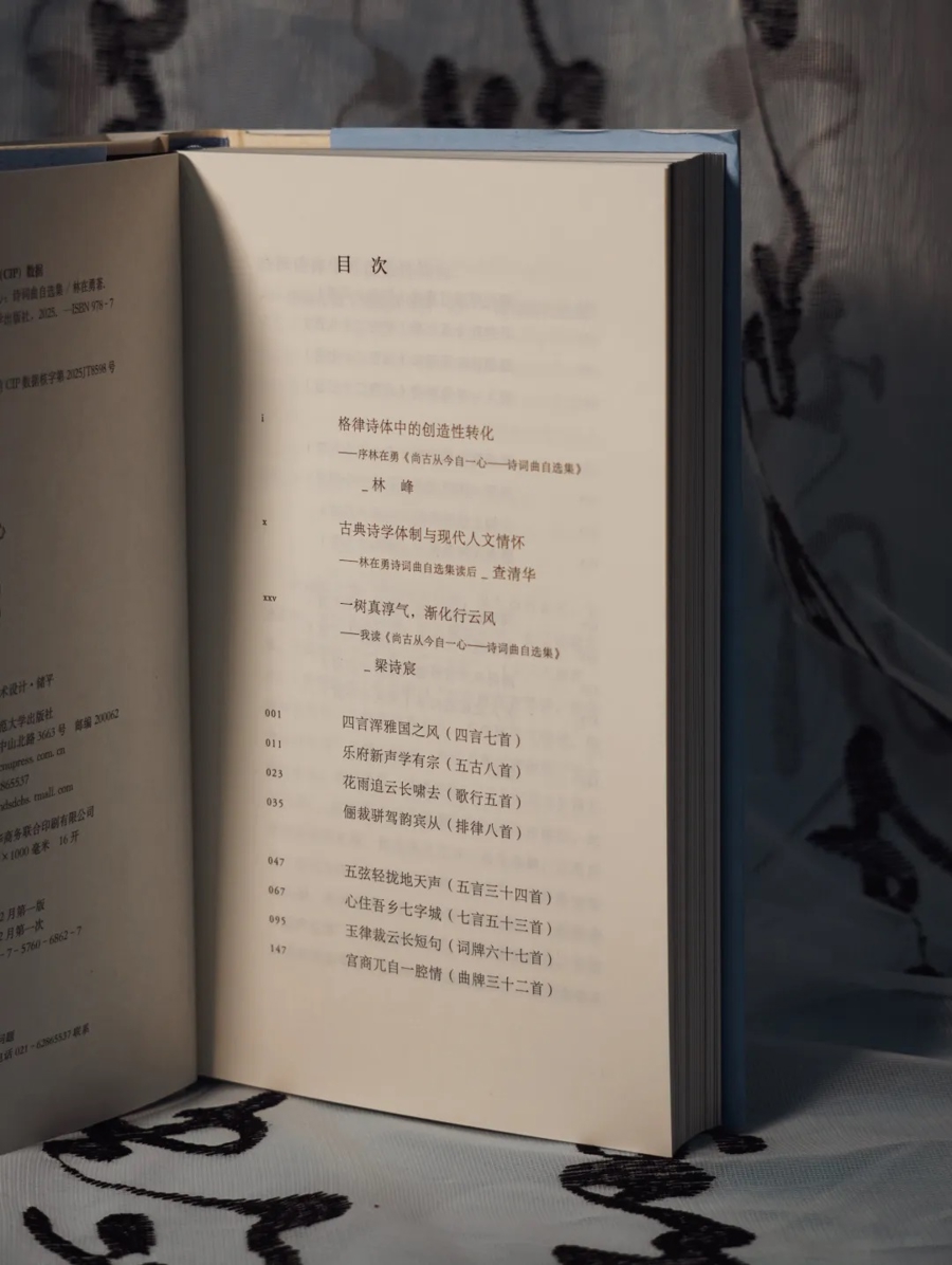 《尚古从今自一心》这个书名,恰是解读全书的关键。“尚古”,是回望与沉潜,是对民族文化源头的深情凝视与谦逊汲取,是对中华诗学辉煌传统与丰富体式的虔诚致敬与默默继承;“从今”,是立足与审视,是以古人之智慧烛照今世之迷惘与纷繁,是让古老的诗体承载当代人的情感、思维与气韵,是持有强烈的现实关怀与“经世致用”的入世精神。“自一心”,则是所有创作终汇于诗人独特而丰盈的心灵世界,是其人格、学识、情怀与时代精神的高度统一。这“一心”,是作者的“赤子之心”,亦是能与天地万物独来往、与古今圣贤相交通的“道心”。因而这个选本,既是一部林先生个人的心灵史诗,亦是一幅新时代的文化剪影;既是一次古典诗词曲的集中展演,亦是一场现代精神的积极求索。