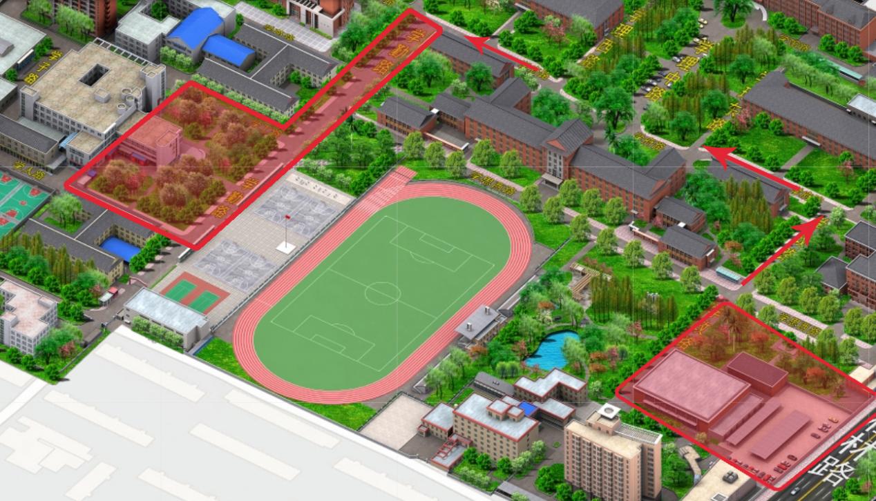 西部球类馆周边停车场、香樟苑广场区域及学勤路全路段(图中红色区域)为招聘会保障车辆停车区。3月30日19时前,请车主将停放在上述区域的所有机动车驶离。
