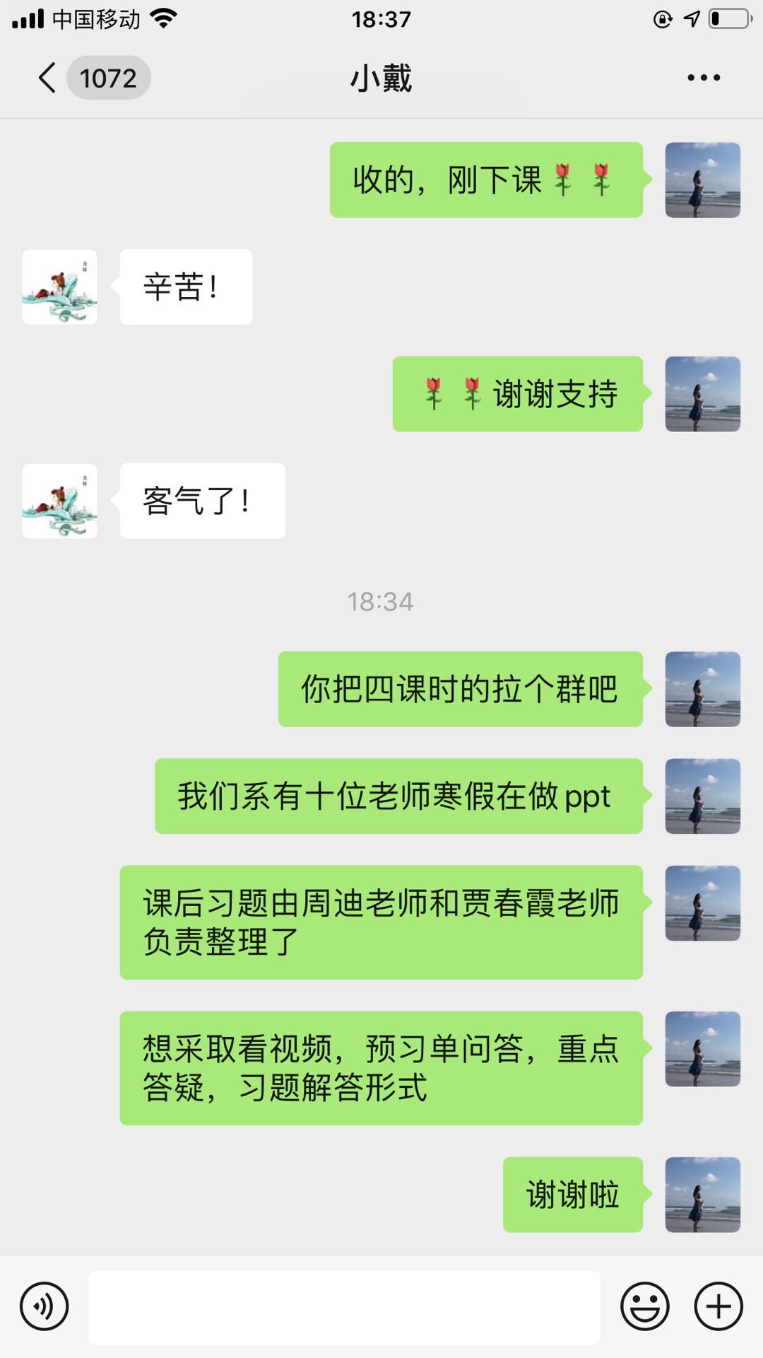 在这过程中涌现出一批善于钻研、乐于奉献的网络教学先锋。周迪老师长期探索网络教学方法,早在“学习通”平台搭建了课程,和自己的教学班同学互动频繁。疫情期间,周迪老师将录制的建课视频、使用平台的技巧和心得等在学院微信群里分享,并经常在线为老师们解答平台使用的疑问。