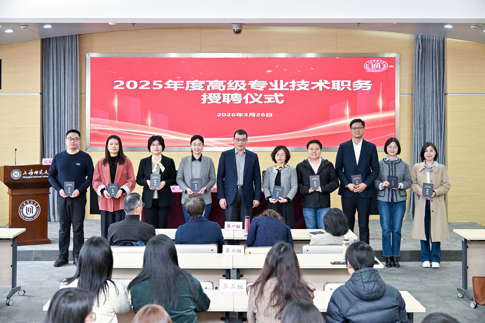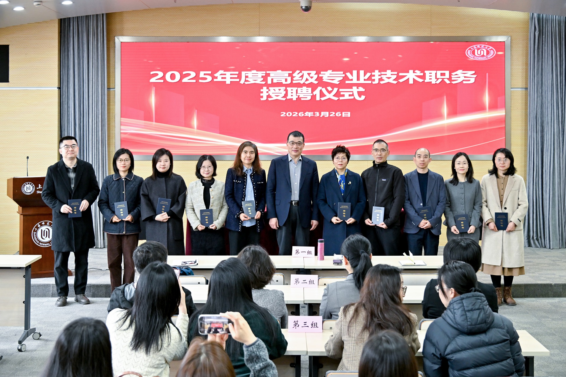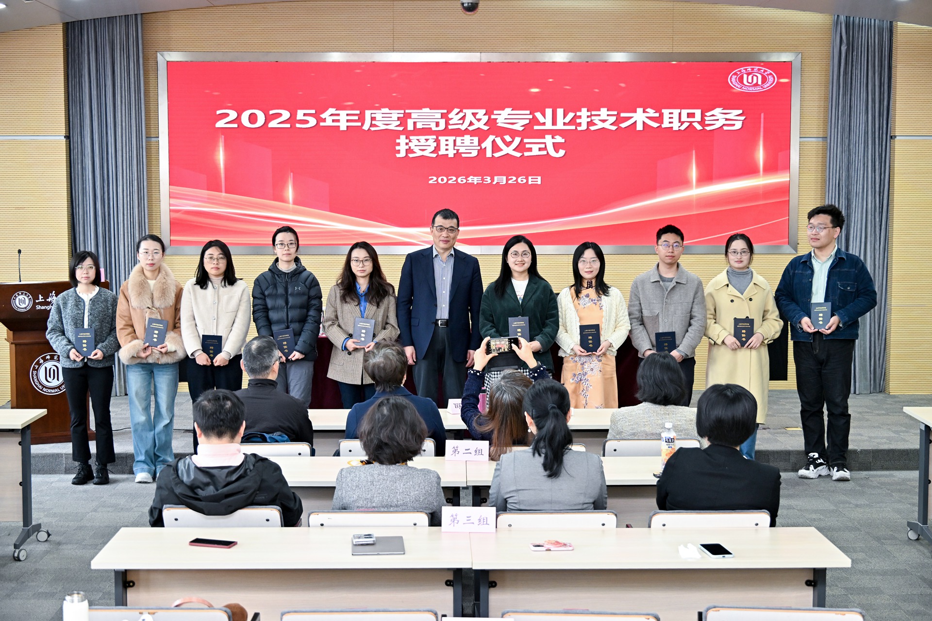 2025年度学校在原有职称评聘文件基础上,新出台了《上海师范大学智库型高级专业技术职务评聘办法(试行)》,更加注重“重服务、强贡献”的价值取向和“分类评价”的发展方向,进一步拓展了专业技术人员的多元发展路径。在校院两级的通力协作下,2025年度共有28位教师晋升正高,53位教师晋升副高,为学校高质量发展注入了强劲动能,彰显出学校人才辈出、蓬勃向上的发展气象。
