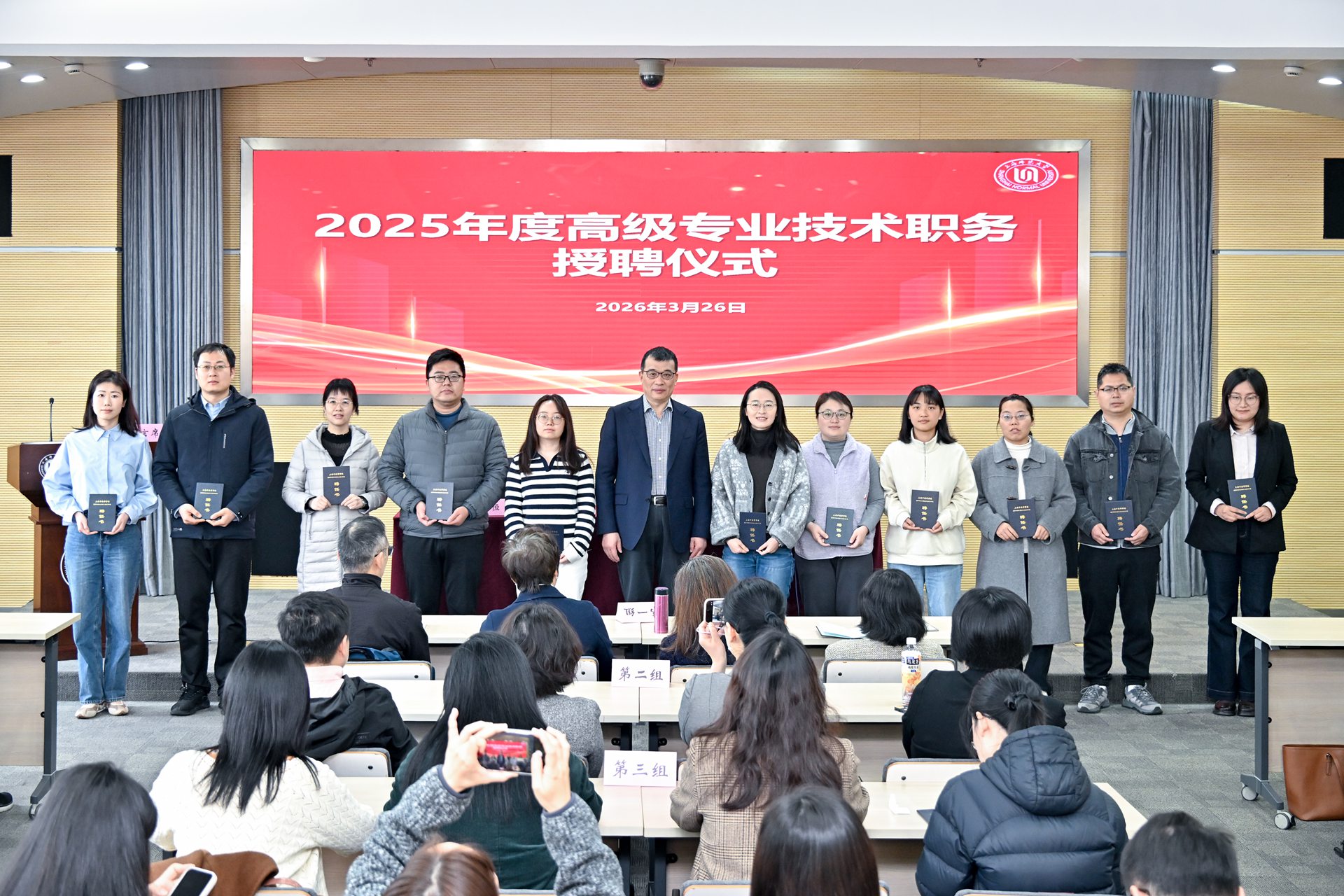 3月26日上午,学校在西部会议中心二号报告厅举行2025年度新聘高级专业技术职务教师授聘仪式。校长陈恒出席仪式,为新聘人员颁发聘书并合影留念。人事处处长徐松如主持授聘仪式。