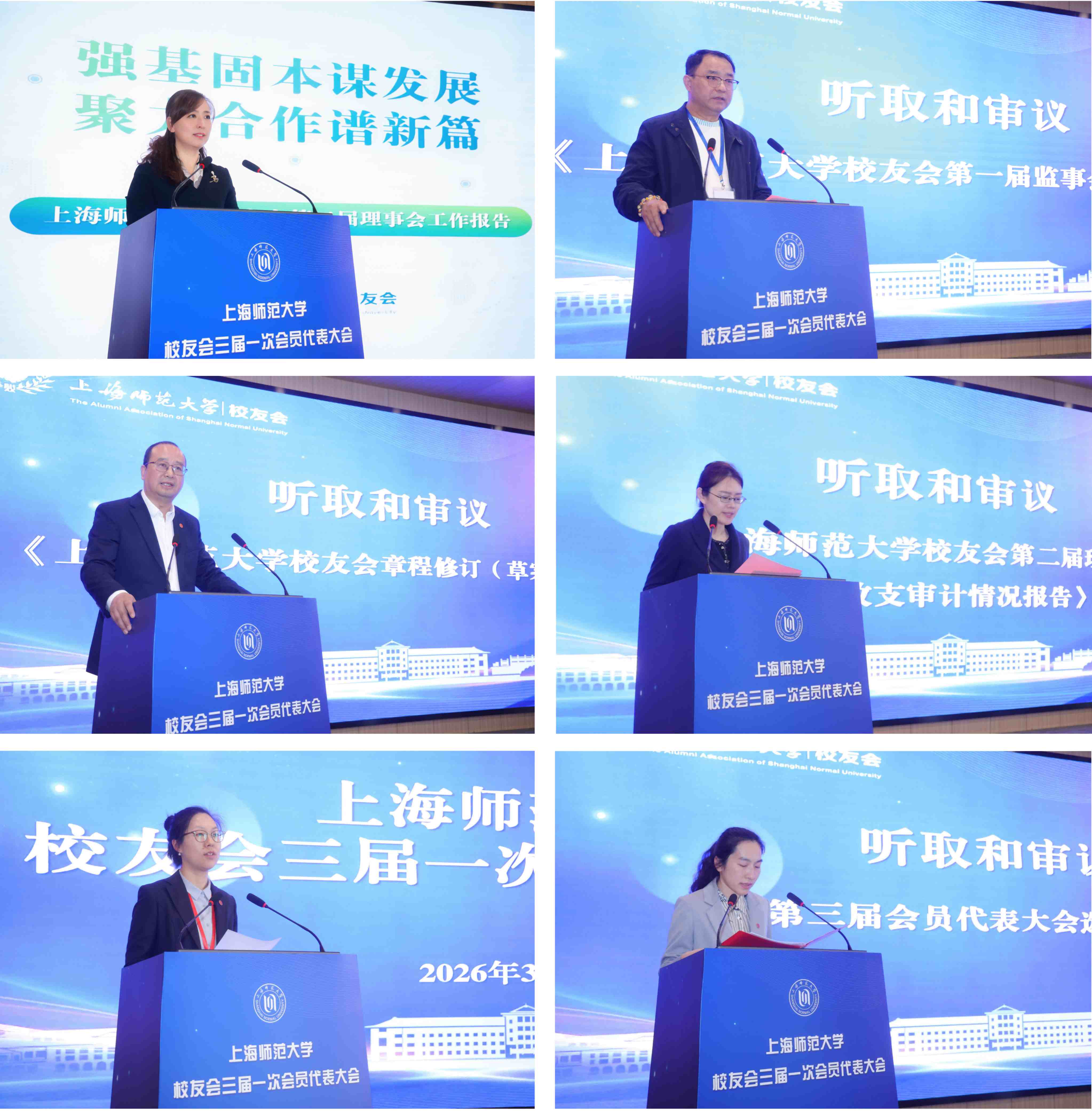 全体与会代表认真听取并审议通过了校友会第二届理事会工作报告,第一届监事会工作报告,第二届理事会财务收支审计情况报告,校友会章程修订(草案)说明,换届选举工作情况报告,第三届会员代表大会选举办法,换届选举总监票人、监票人名单及产生情况说明,以及理事、监事候选人名单及产生情况报告。会议通过无记名投票选举产生了上海师范大学校友会第三届理事会理事、第二届监事会监事。