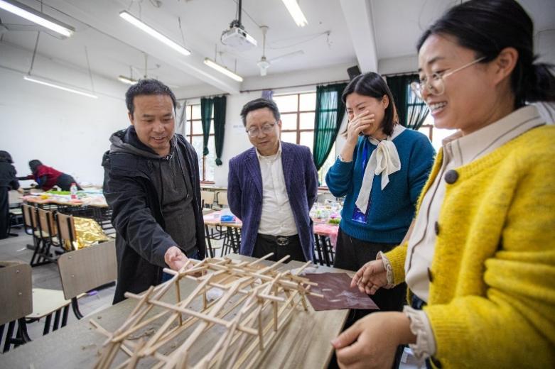 培训的核心环节是项目化学习工作坊。学员分为四个大组,分别围绕“贯木拱桥”“智能喵屋”“未来城市”“风力发电塔”四个项目,在建筑工程学院罗晶、王红囡、王宇辉、陈旭等项目导师和科学教育师范生助教的全程指导下,完成方案设计、模型制作、视频创作及成果汇报。3月29日上午,项目化实践成果展示在上海师范大学音乐厅举行。上海市科委科普处处长何家骥,江西省教育厅监管处副处长王静莉、干部席志义,上海师范大学退役军人学院党委副书记孟盛益,上海师范大学附属第五嘉定实验学校校长陈勇,上海市闵行区启德学校校长沈滨,上海师范大学建筑工程学院副教授杨永华等专家担任评委。何家骥、陈勇作为评委代表对学员成果作精彩点评。经评审,评选出各项目一、二等奖及特等奖。