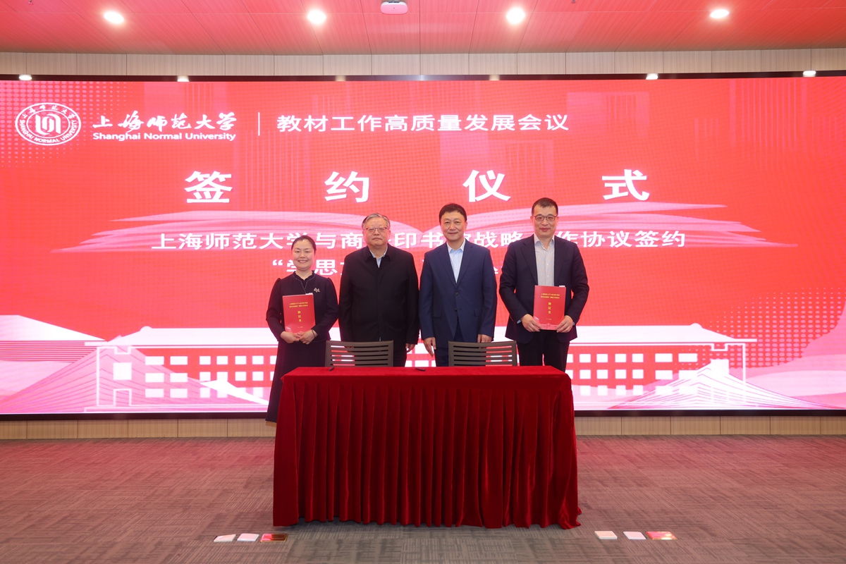 会上,校长陈恒与商务印书馆总编辑叶军签署战略合作协议,双方将在原创学术教材、中华优秀传统文化教材出版等领域深度合作。上海市教委副主任杨振峰表示,希望上海师大以教材建设为支点,为上海高等教育内涵式发展提供可复制、可推广的“上师经验”。