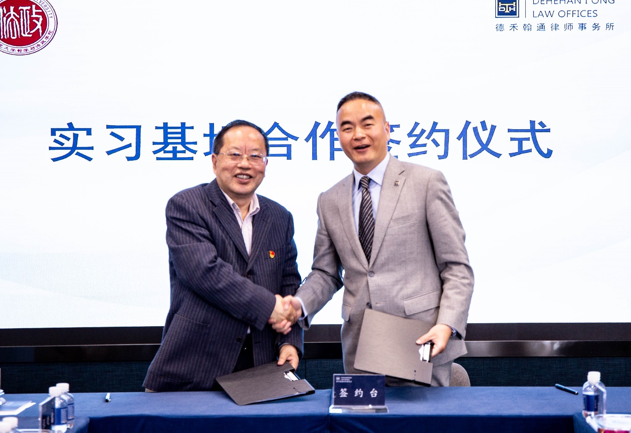 哲学与法政学院院长蒋传光,党委副书记、副院长姚秋磊、德禾翰通律师事务所主任蒋春、党支部书记程耀祖、工会主席张洪昌、哲学与法政学院法硕中心主任环建芬、法硕中心班导师张赫曦、就业专职辅导员张晓雷、法学社党支部书记林柏杨、法学社社长沈嘉玮、法硕研究生汪陈宇以及德禾翰通哲法校友张苏媛、孙启广和张渊共同出席了合作签约仪式。