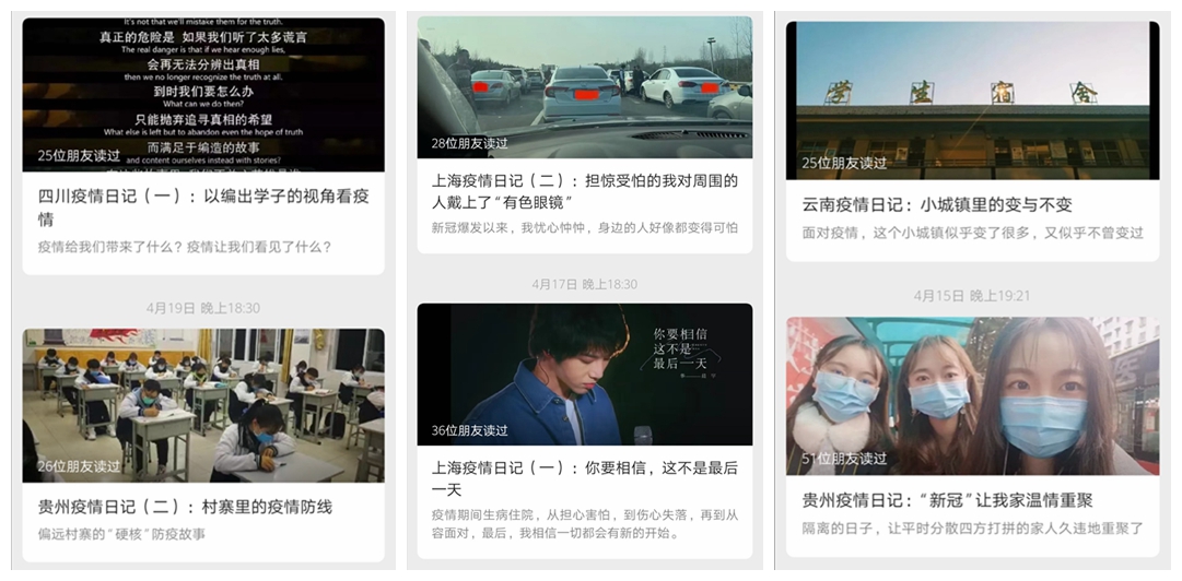 疫情是沉重的,但生活中依然有许多精彩与感动。在祖国的东西南北,同学们亲身体会着历史的变迁,记录了一个普通人、一个普通家庭、一个村落乃至一个城市在疫情中的特殊经历,也讲述了一个个平凡又真实动人的故事。